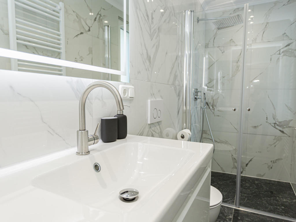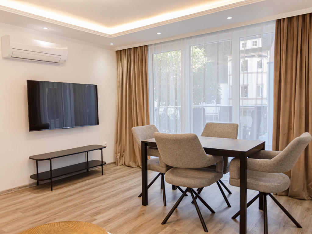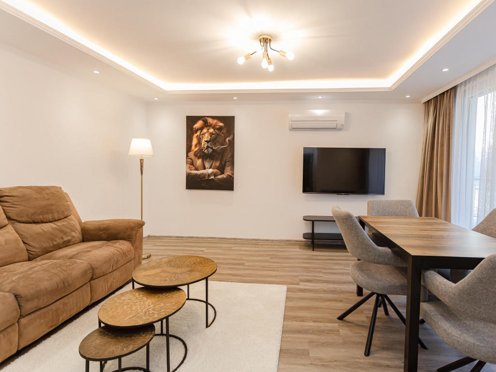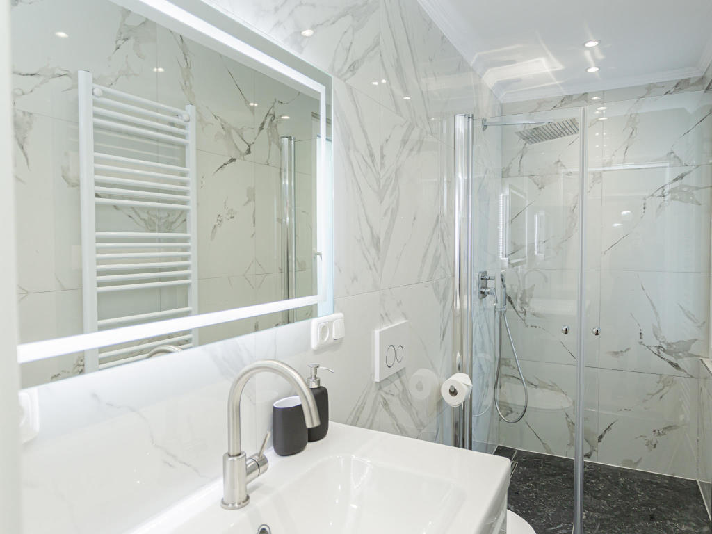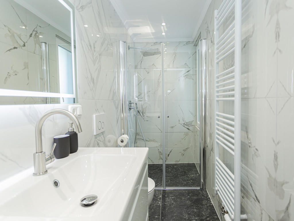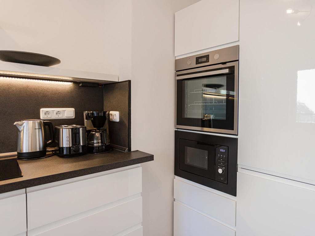 In der separaten Küche finden Sie alles, was Sie benötigen, um köstliche Mahlzeiten zuzubereiten, einschließlich eines Elektroherds, einer Mikrowelle und einer Geschirrspülmaschine. Der Essbereich bietet Platz für bis zu vier Personen, ideal für gesellige Mahlzeiten. Das moderne Badezimmer verfügt über eine ebenerdige Dusche, einen Föhn und alle notwendigen Annehmlichkeiten. Handtücher und Duschtücher werden bereitgestellt.