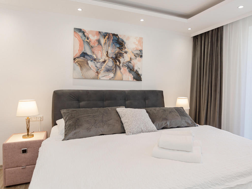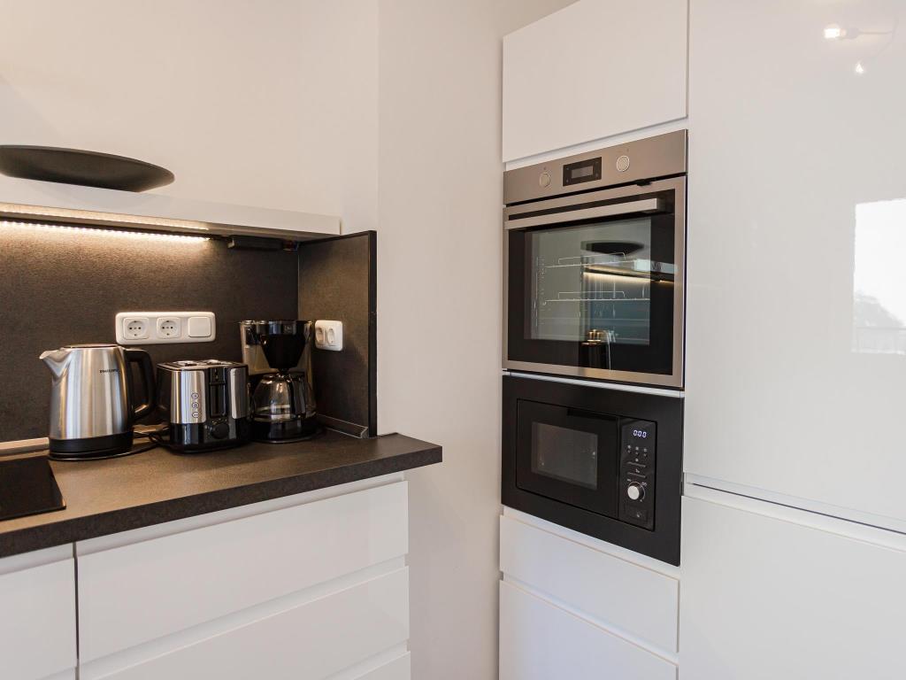 Die separate Küche bietet alles, was Sie für die Zubereitung Ihrer Mahlzeiten benötigen, darunter ein Elektroherd, Backofen, Mikrowelle, Kühlschrank, Geschirrspüler und weitere Küchenutensilien. Der Essbereich lädt zum gemeinsamen Genießen ein. Im Badezimmer erwartet Sie eine moderne Dusche, ein Waschbecken, ein WC sowie ein Föhn. Handtücher, Duschtücher und ein Seifenspender stehen für Sie bereit.